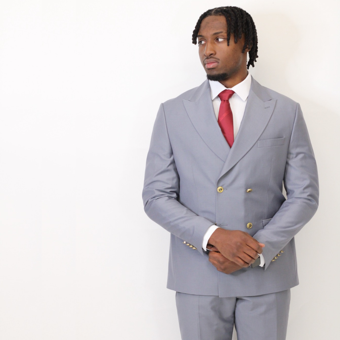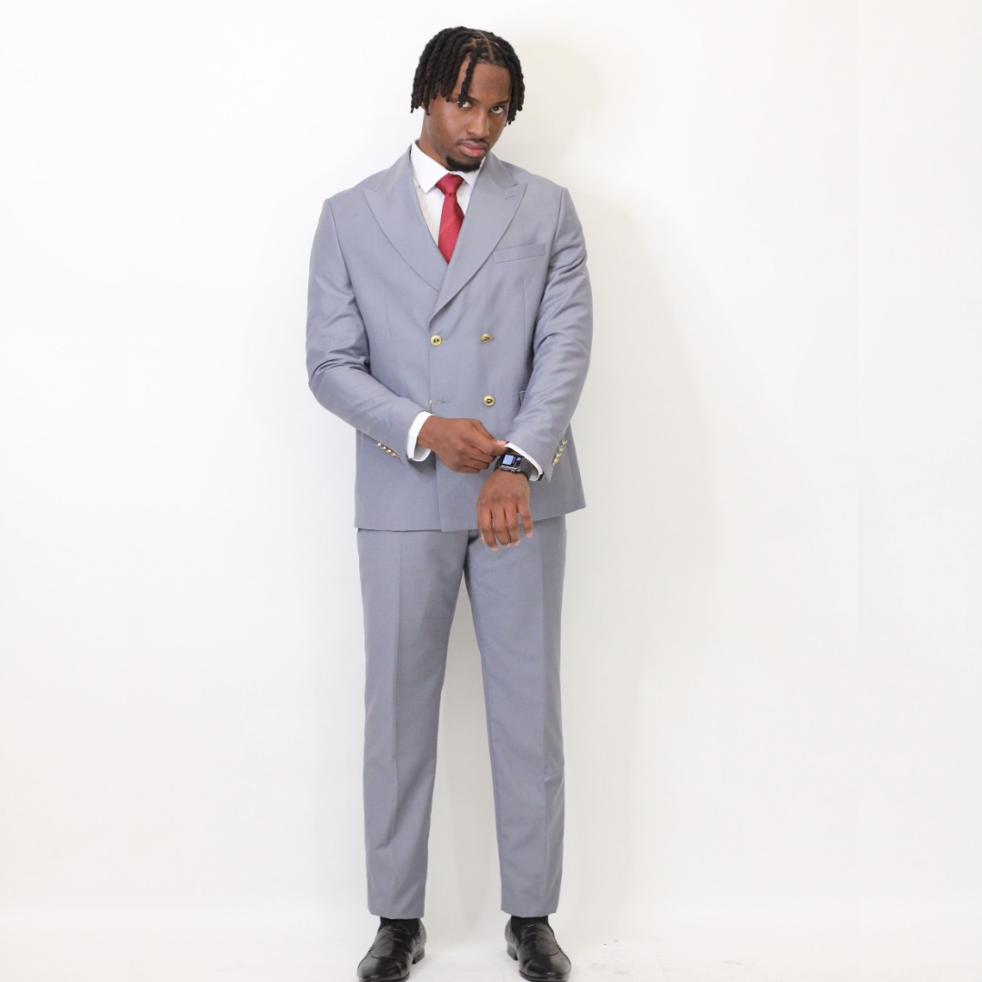 Light Grey Double-breasted 2pc suit with Gold buttons
