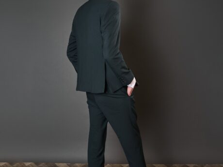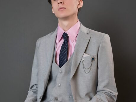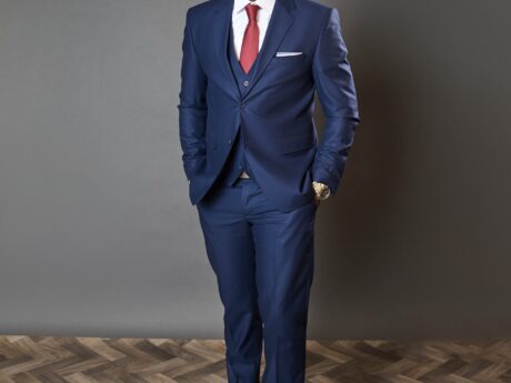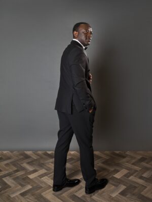 2-piece black suit in a slim fit with a classic peak lapel, perfect for weddings, graduations, and special occasions.