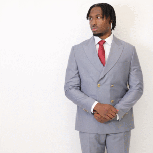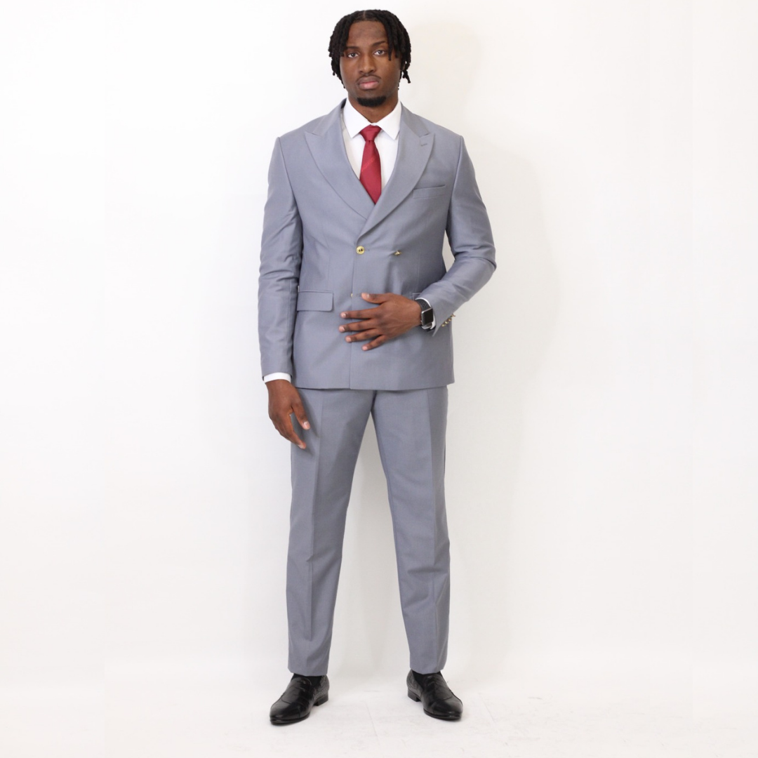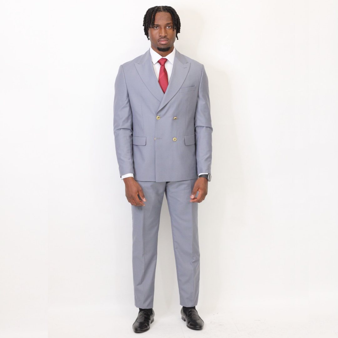 Light Grey Double-breasted 2pc suit with Gold buttons