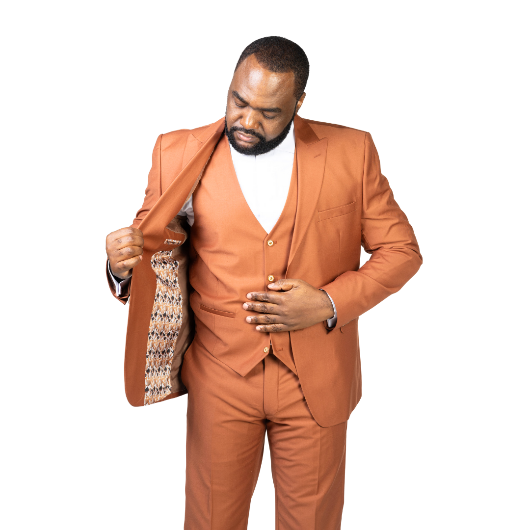 Stand out with this bold, tailored rust suit—perfect for weddings, events, and business style. Premium fabric, sharp peak-lapel design, and a rich color that works all year. Pants come unhemmed for a custom-perfect fit.