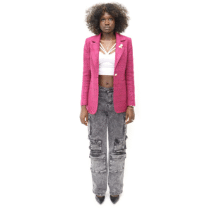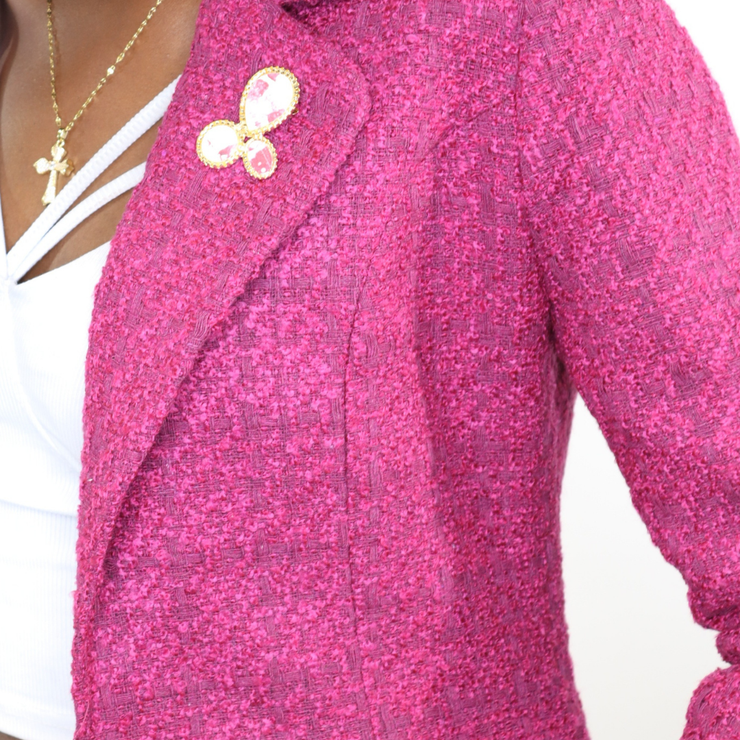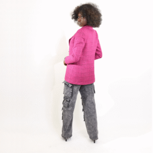 Bold, feminine, and effortlessly chic — this fuchsia textured blazer is designed to make a statement. Made from a 60% cotton and 30% polyester blend, it offers structure with a comfortable fit. Featuring a notch lapel and tailored silhouette, it pairs beautifully with jeans, trousers, or skirts for a confident day-to-night look.